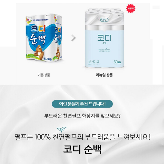 [Ssangyong] Codi Pure White Toilet Roll 30mlx30pcs 쌍용 코디 순백