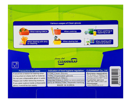 [Cleanlab] Clean Disposable Kitchen Gloves 50p (M) 크린랩 일회용장갑