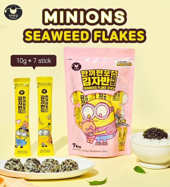 Elevate your meals with the delicious [Manjeon Gim] Minions Seasoned Seaweed Flakes – a fun and tasty way to enjoy Korea’s favorite seaweed snack!