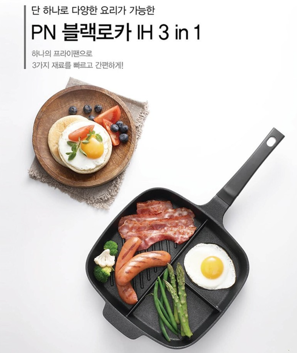 Make meal prep effortless with the PN Poongnyun Black Rocca IH 3-in-1 Multi Fry Pan—designed for busy kitchens and efficient cooking! With three separate compartments, you can prepare an entire meal in one go.
