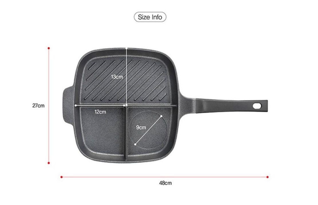 ✔️ 3-in-1 Compartment Design – Cook multiple ingredients at once without mixing flavors. Perfect for preparing an American Big Breakfast—fry eggs in one section, sizzle bacon & sausages in another, and sauté veggies in the third!